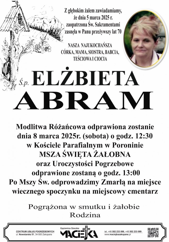 Elżbieta Abram - Nekrologi - podhale24.pl