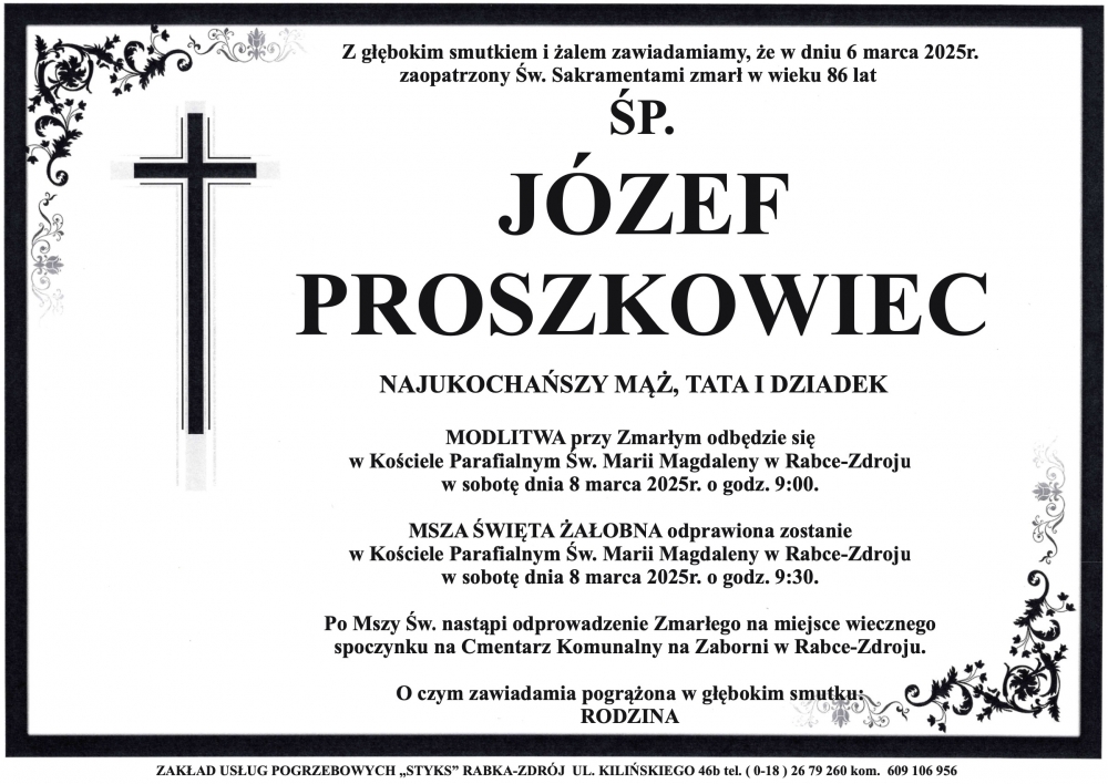 Józef Proszkowiec - Nekrologi - podhale24.pl