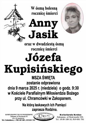 Podhale24.pl zastrzega sobie prawo do nie publikowania wspomnień, w szczególności tych nie związanych z profilem działu nekrologi, zawierających wulgaryzmy, wzywających do zachowań niezgodnych z prawem, obrażających osoby publiczne i prywatne, obrażających inne narodowości, rasy, religie itd, oraz te, bez możliwości telefonicznej lub mailowej weryfikacji ich autora.