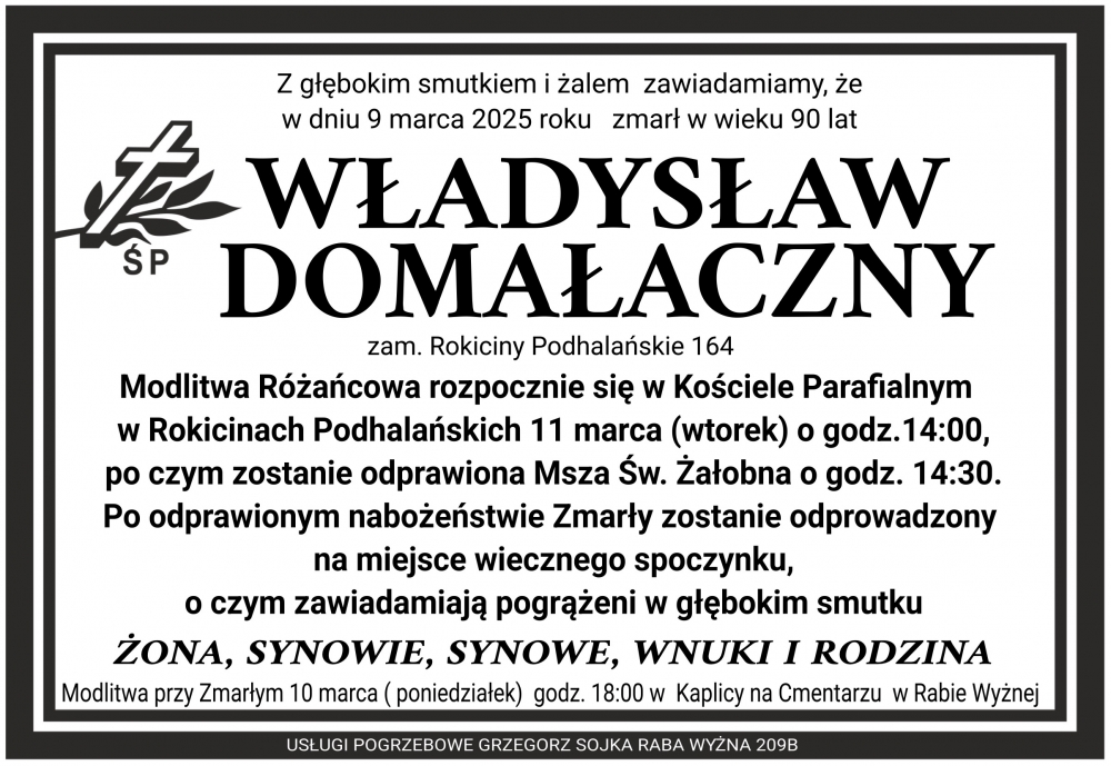Władysław Domałaczny - Nekrologi - podhale24.pl