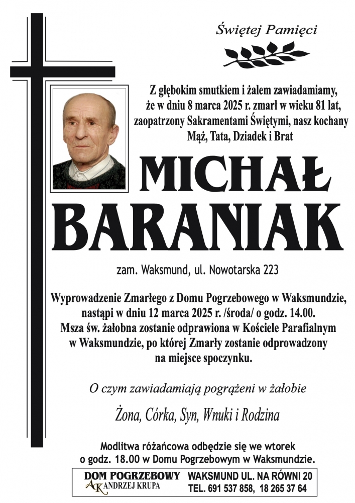 Michał Baraniak - Nekrologi - podhale24.pl