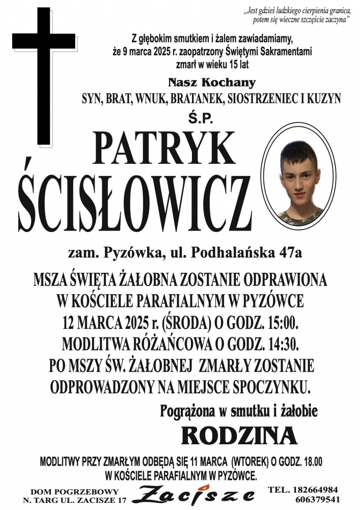 Patryk Ścisłowicz - Nekrologi - podhale24.pl