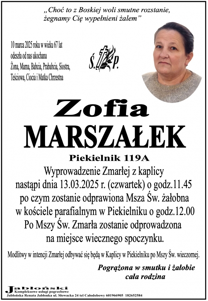 Zofia Marszałek - Nekrologi - podhale24.pl