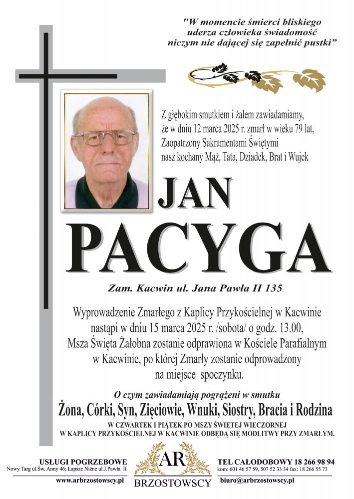 Podhale24.pl zastrzega sobie prawo do nie publikowania wspomnień, w szczególności tych nie związanych z profilem działu nekrologi, zawierających wulgaryzmy, wzywających do zachowań niezgodnych z prawem, obrażających osoby publiczne i prywatne, obrażających inne narodowości, rasy, religie itd, oraz te, bez możliwości telefonicznej lub mailowej weryfikacji ich autora.