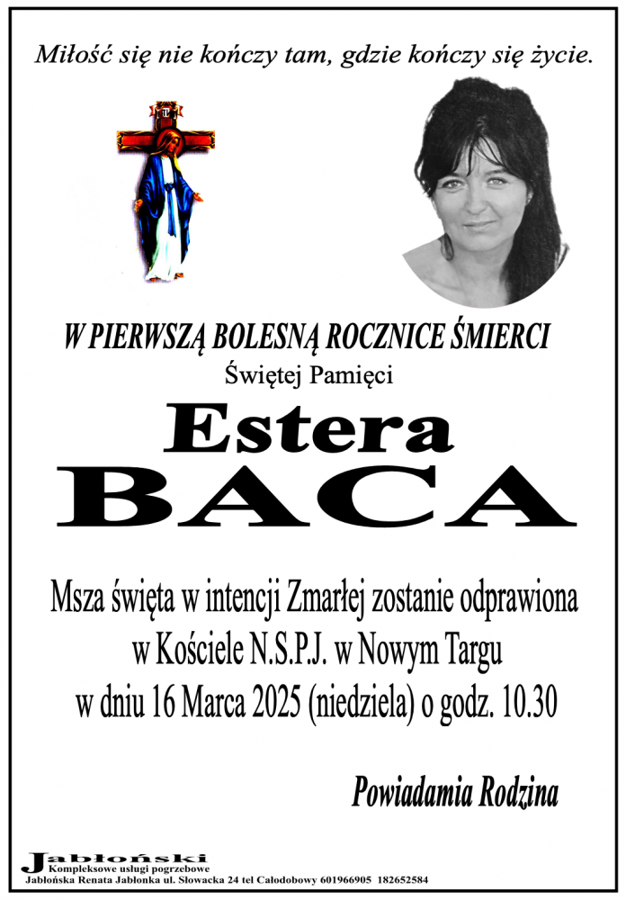 Podhale24.pl zastrzega sobie prawo do nie publikowania wspomnień, w szczególności tych nie związanych z profilem działu nekrologi, zawierających wulgaryzmy, wzywających do zachowań niezgodnych z prawem, obrażających osoby publiczne i prywatne, obrażających inne narodowości, rasy, religie itd, oraz te, bez możliwości telefonicznej lub mailowej weryfikacji ich autora.