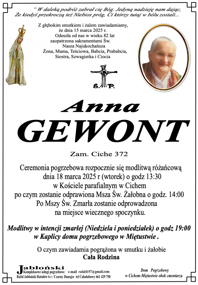 Anna Gewont - Nekrologi - podhale24.pl