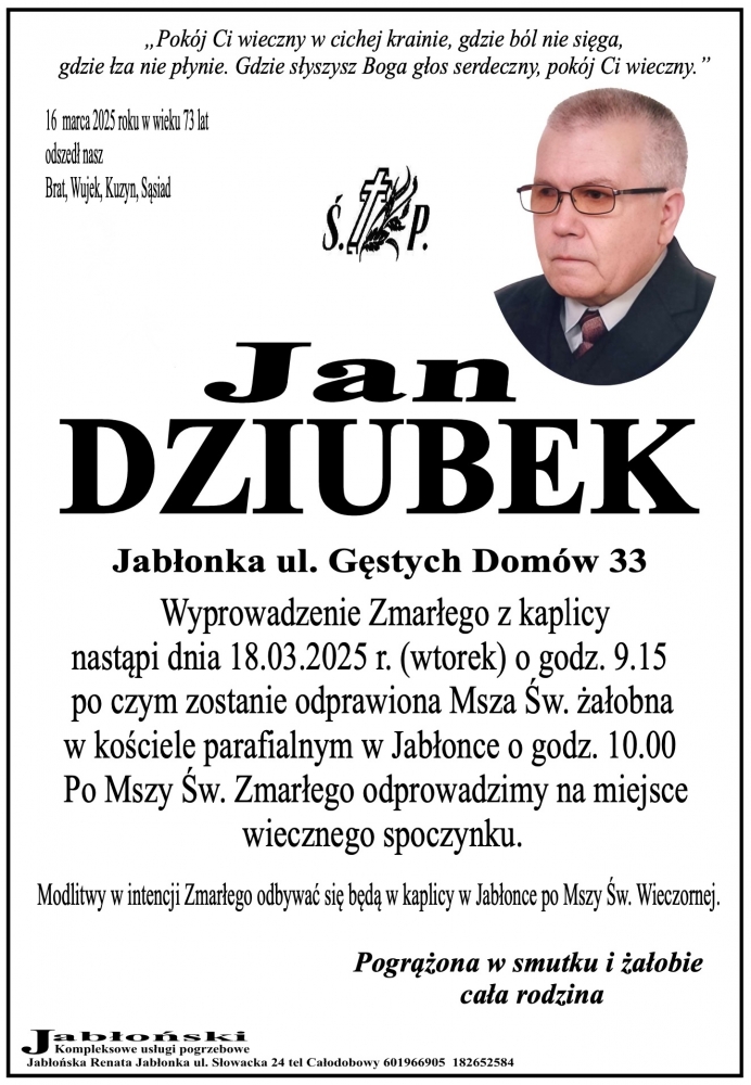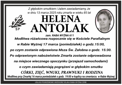 Podhale24.pl zastrzega sobie prawo do nie publikowania wspomnień, w szczególności tych nie związanych z profilem działu nekrologi, zawierających wulgaryzmy, wzywających do zachowań niezgodnych z prawem, obrażających osoby publiczne i prywatne, obrażających inne narodowości, rasy, religie itd, oraz te, bez możliwości telefonicznej lub mailowej weryfikacji ich autora.