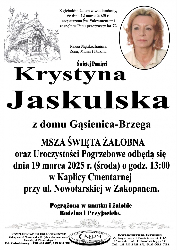 Krystyna Jaskulska - Nekrologi - podhale24.pl