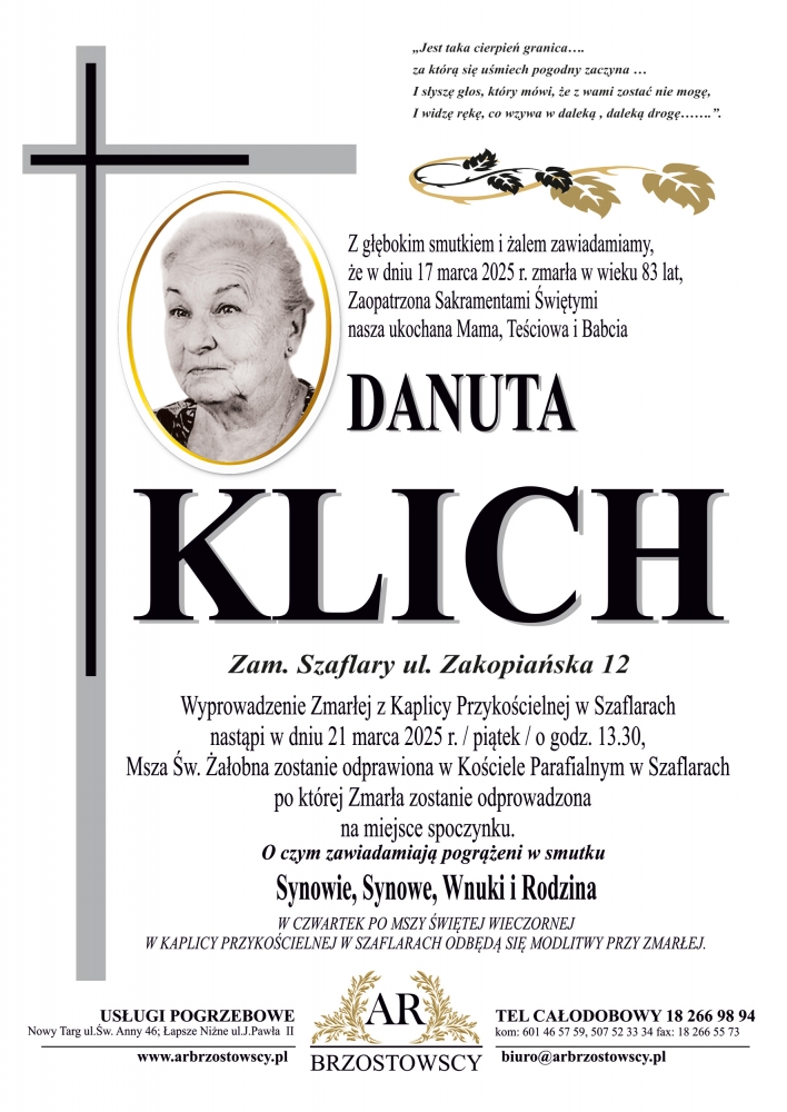 Danuta Klich - Nekrologi - podhale24.pl