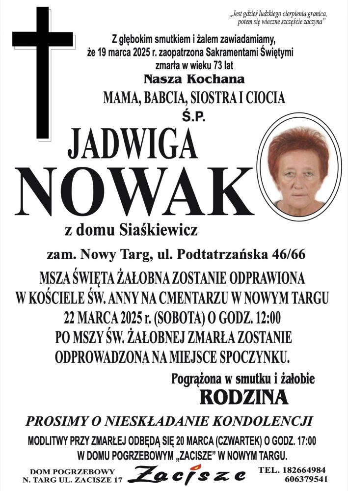 Jadwiga Nowak - Nekrologi - podhale24.pl
