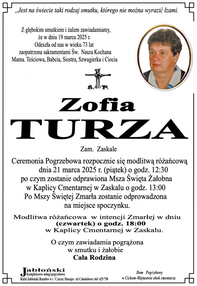 Zofia Turza - Nekrologi - podhale24.pl