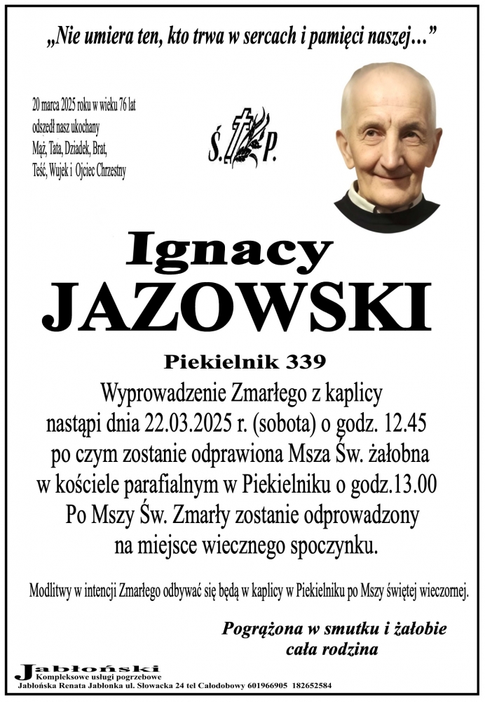 Ignacy Jazowski - Nekrologi - podhale24.pl
