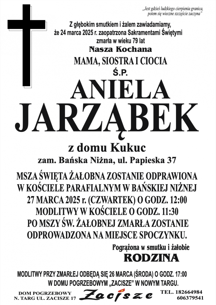 Aniela Jarząbek - Nekrologi - podhale24.pl