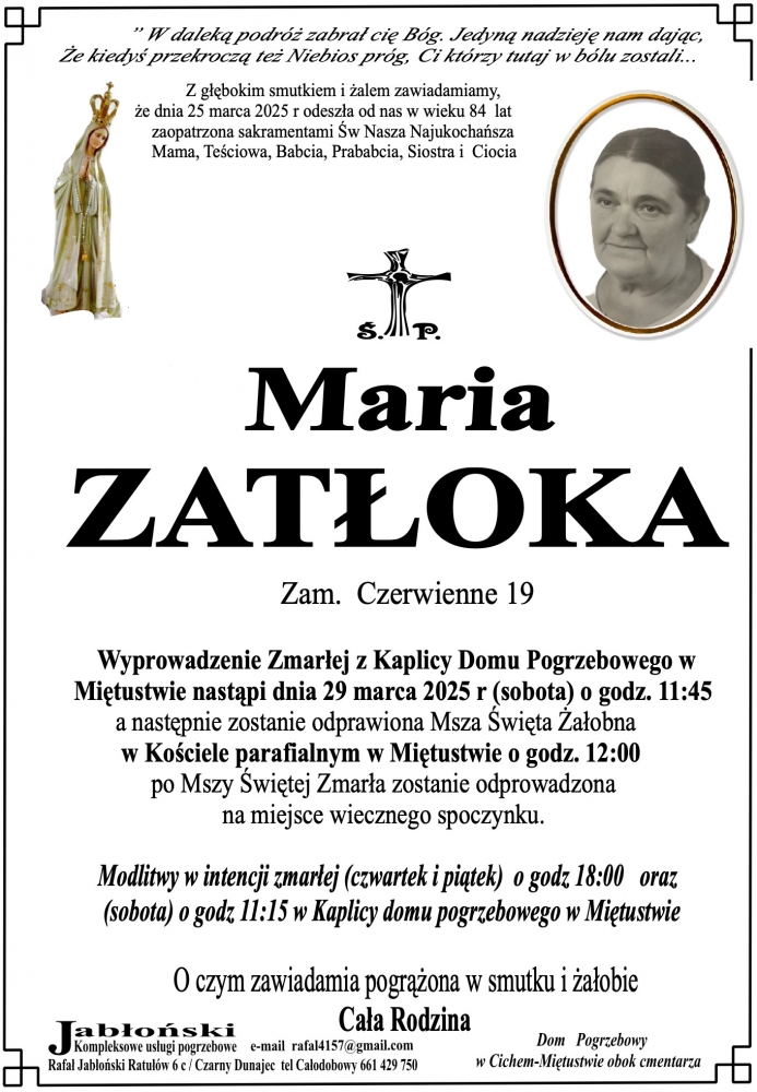 Maria Zatłoka - Nekrologi - podhale24.pl