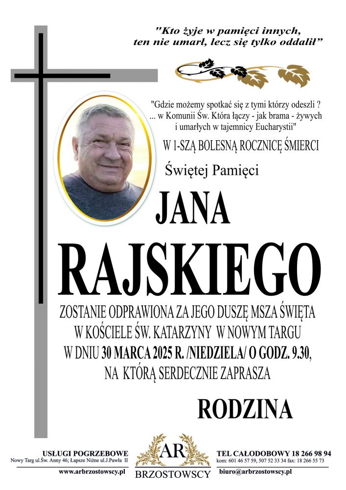 Podhale24.pl zastrzega sobie prawo do nie publikowania wspomnień, w szczególności tych nie związanych z profilem działu nekrologi, zawierających wulgaryzmy, wzywających do zachowań niezgodnych z prawem, obrażających osoby publiczne i prywatne, obrażających inne narodowości, rasy, religie itd, oraz te, bez możliwości telefonicznej lub mailowej weryfikacji ich autora.