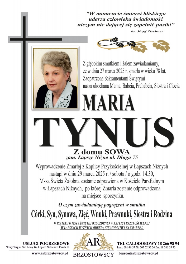 Maria Tynus - Nekrologi - podhale24.pl