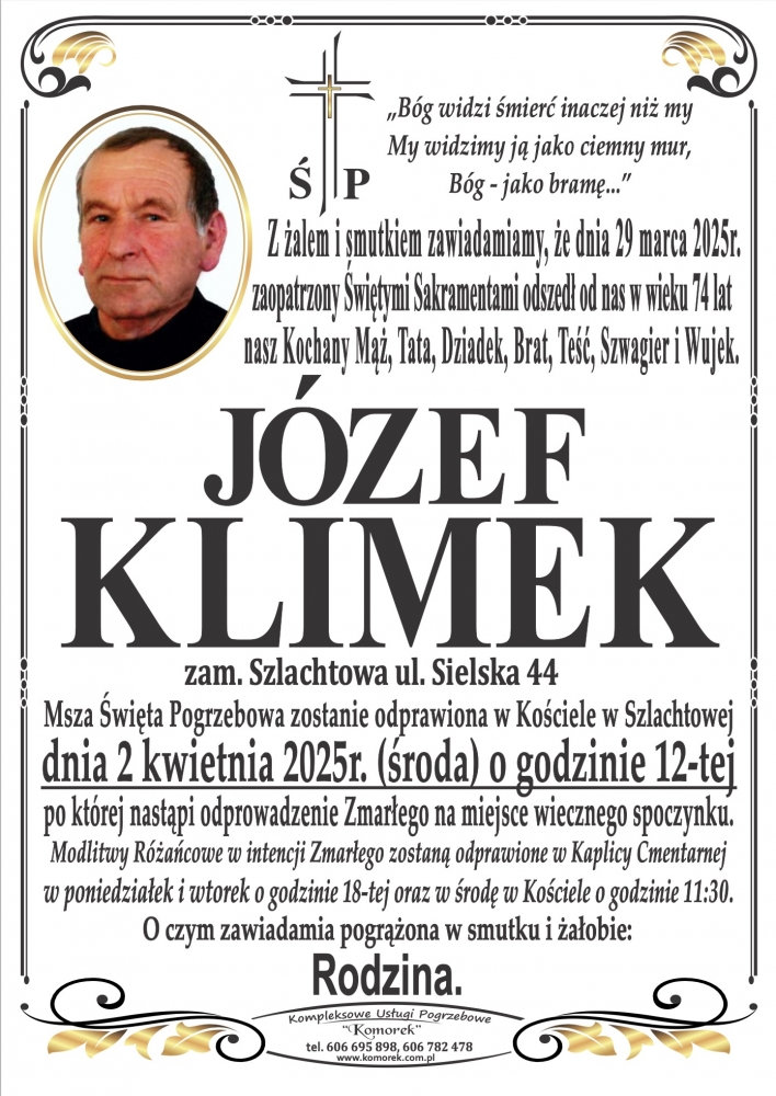 Józef Klimek - Nekrologi - podhale24.pl