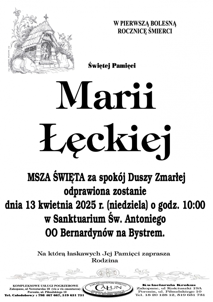 Maria Łęcka - Nekrologi - podhale24.pl