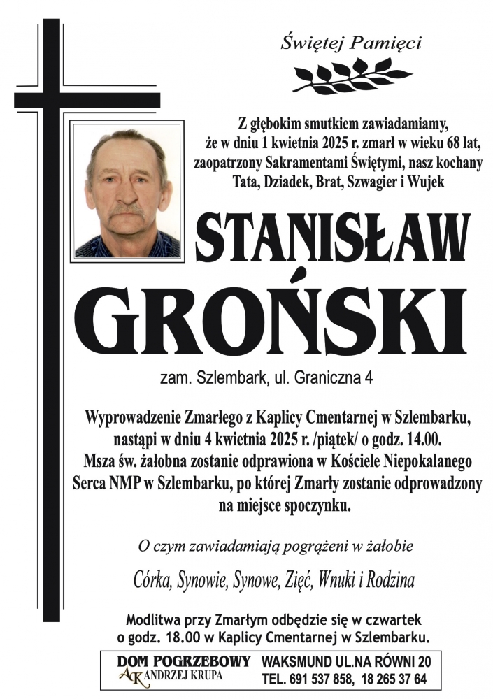 Podhale24.pl zastrzega sobie prawo do nie publikowania wspomnień, w szczególności tych nie związanych z profilem działu nekrologi, zawierających wulgaryzmy, wzywających do zachowań niezgodnych z prawem, obrażających osoby publiczne i prywatne, obrażających inne narodowości, rasy, religie itd, oraz te, bez możliwości telefonicznej lub mailowej weryfikacji ich autora.
