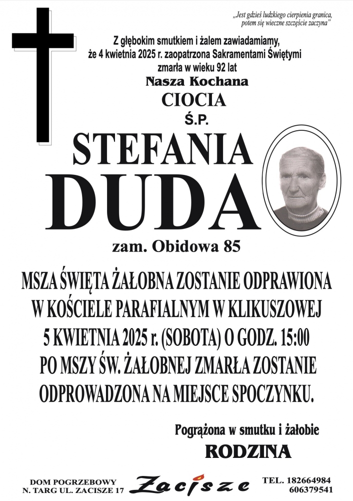 Stefania Duda - Nekrologi - podhale24.pl