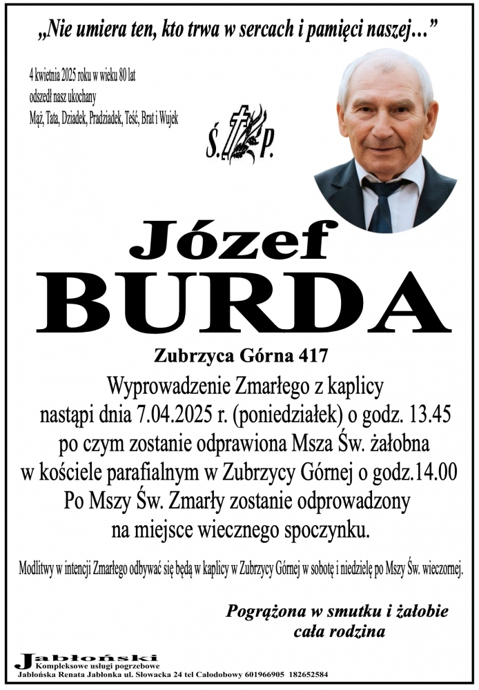 Józef Burda - Nekrologi - podhale24.pl