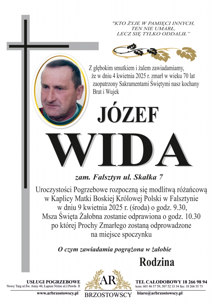 Podhale24.pl zastrzega sobie prawo do nie publikowania wspomnień, w szczególności tych nie związanych z profilem działu nekrologi, zawierających wulgaryzmy, wzywających do zachowań niezgodnych z prawem, obrażających osoby publiczne i prywatne, obrażających inne narodowości, rasy, religie itd, oraz te, bez możliwości telefonicznej lub mailowej weryfikacji ich autora.