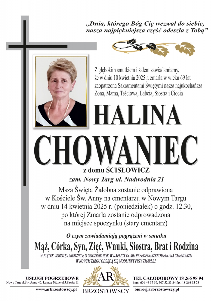Halina Chowaniec - Nekrologi - podhale24.pl