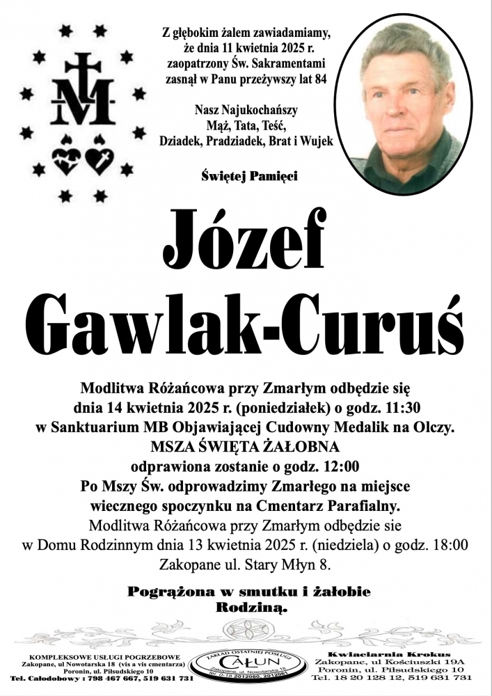 Józef Gawlak-Curuś - Nekrologi - podhale24.pl