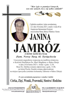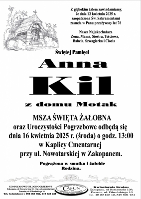 Podhale24.pl zastrzega sobie prawo do nie publikowania wspomnień, w szczególności tych nie związanych z profilem działu nekrologi, zawierających wulgaryzmy, wzywających do zachowań niezgodnych z prawem, obrażających osoby publiczne i prywatne, obrażających inne narodowości, rasy, religie itd, oraz te, bez możliwości telefonicznej lub mailowej weryfikacji ich autora.