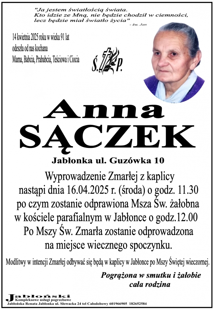 Anna Sączek - Nekrologi - podhale24.pl