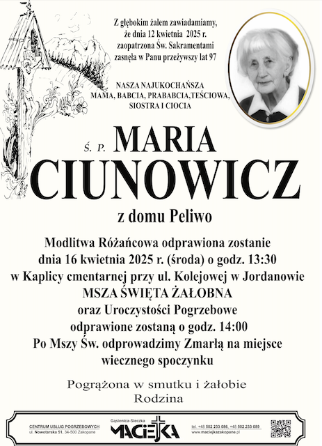 Maria Ciunowicz - Nekrologi - podhale24.pl