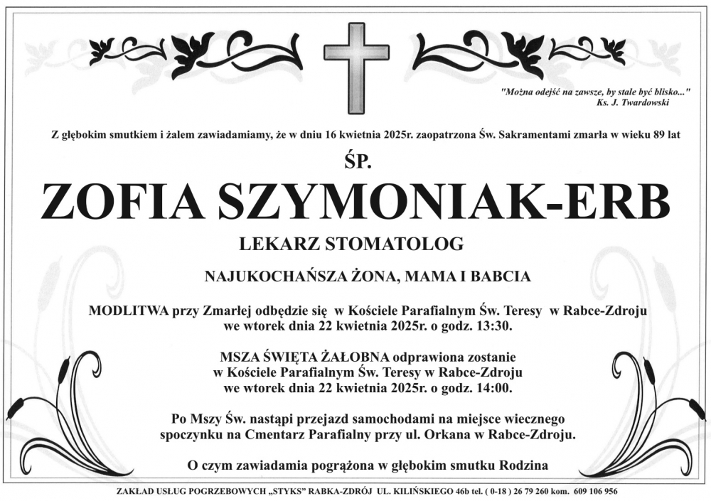 Zofia Szymoniak-Erb - Nekrologi - podhale24.pl