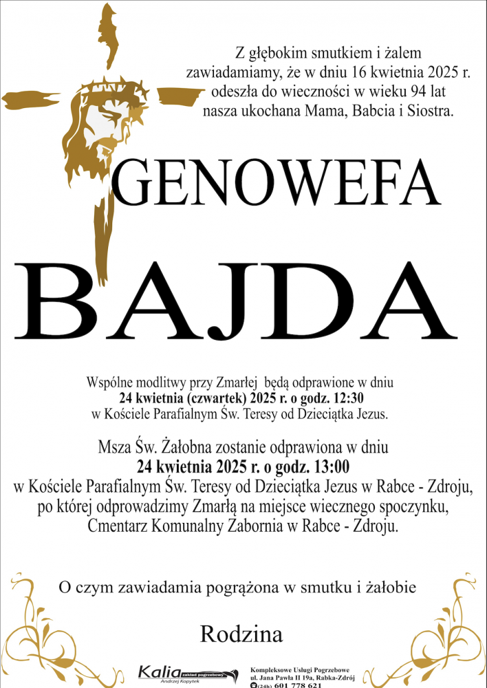 Genowefa Bajda - Nekrologi - podhale24.pl