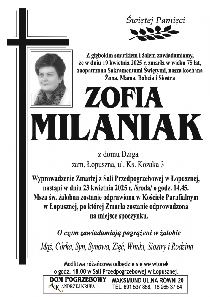Zofia Milaniak - Nekrologi - podhale24.pl
