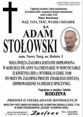 Podhale24.pl zastrzega sobie prawo do nie publikowania wspomnień, w szczególności tych nie związanych z profilem działu nekrologi, zawierających wulgaryzmy, wzywających do zachowań niezgodnych z prawem, obrażających osoby publiczne i prywatne, obrażających inne narodowości, rasy, religie itd, oraz te, bez możliwości telefonicznej lub mailowej weryfikacji ich autora.