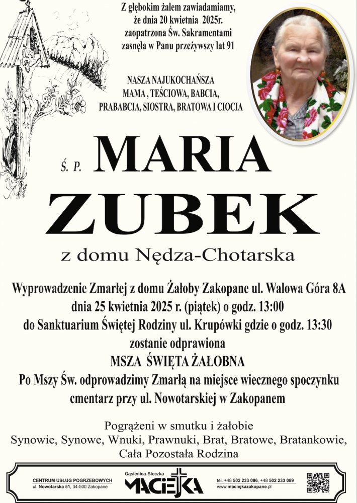 Podhale24.pl zastrzega sobie prawo do nie publikowania wspomnień, w szczególności tych nie związanych z profilem działu nekrologi, zawierających wulgaryzmy, wzywających do zachowań niezgodnych z prawem, obrażających osoby publiczne i prywatne, obrażających inne narodowości, rasy, religie itd, oraz te, bez możliwości telefonicznej lub mailowej weryfikacji ich autora.