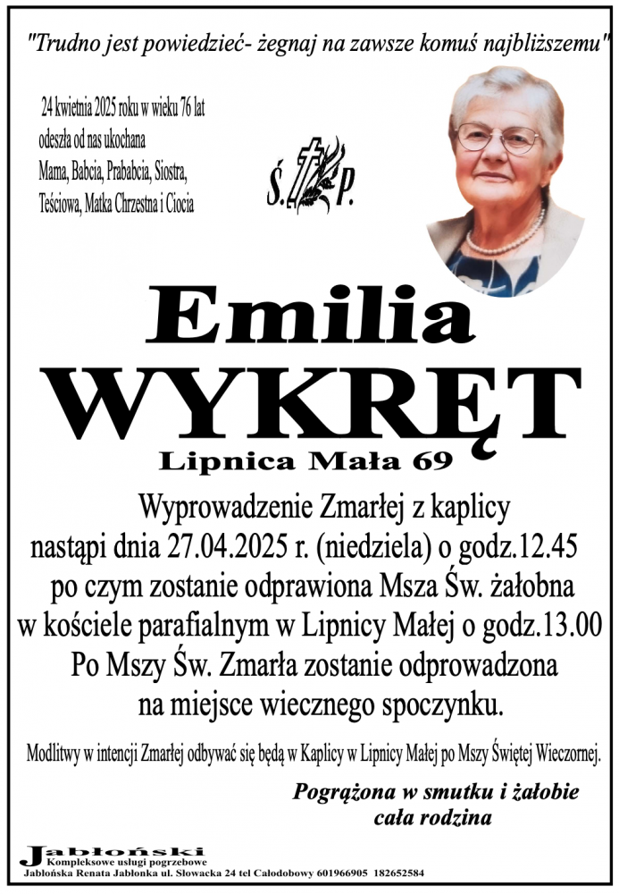 Emilia Wykręt - Nekrologi - podhale24.pl