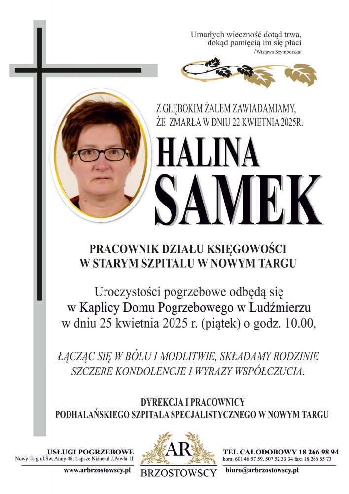 Halina Samek - Nekrologi - podhale24.pl