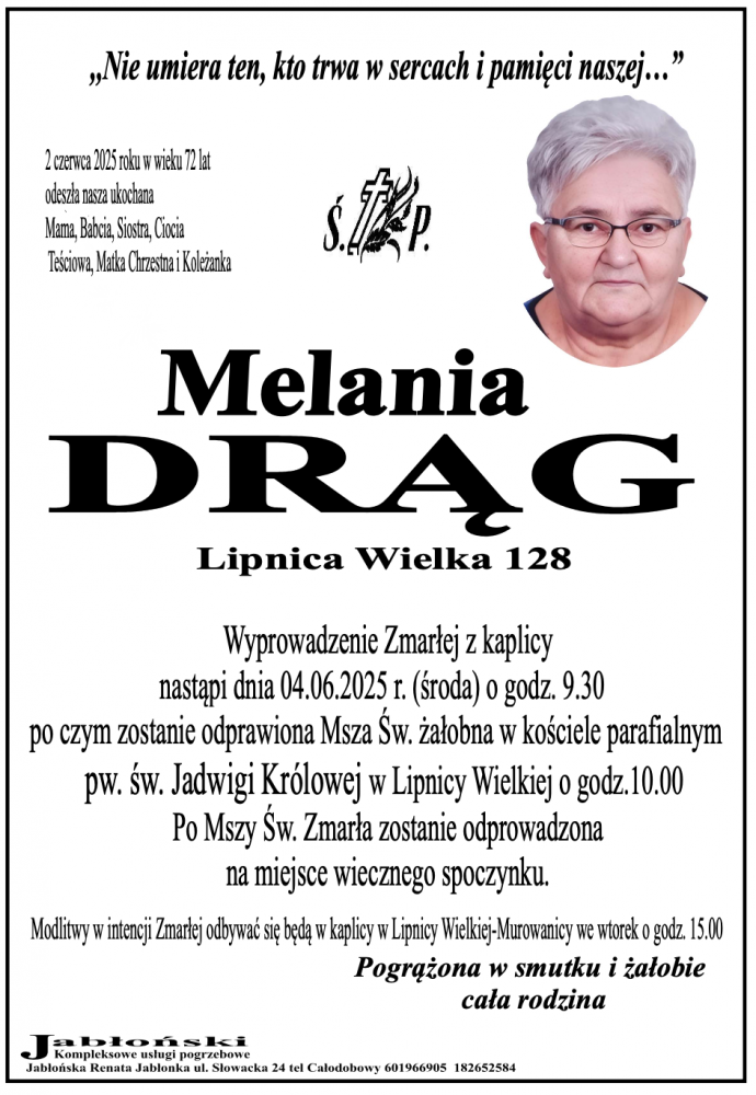 Melania Drąg - Nekrologi - podhale24.pl