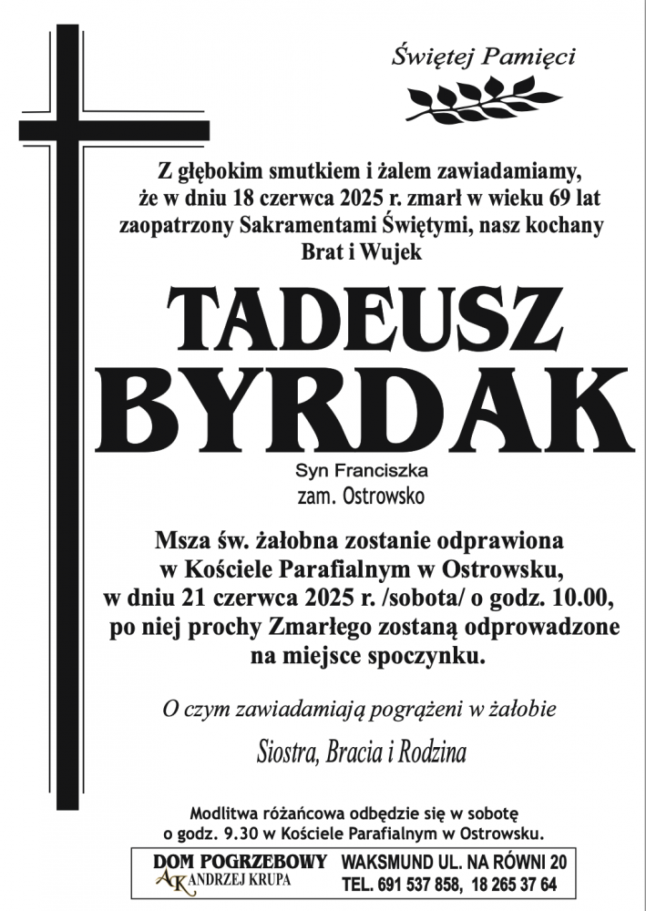 Tadeusz Byrdak - Nekrologi - podhale24.pl