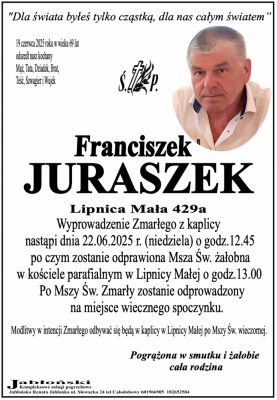 Podhale24.pl zastrzega sobie prawo do nie publikowania wspomnień, w szczególności tych nie związanych z profilem działu nekrologi, zawierających wulgaryzmy, wzywających do zachowań niezgodnych z prawem, obrażających osoby publiczne i prywatne, obrażających inne narodowości, rasy, religie itd, oraz te, bez możliwości telefonicznej lub mailowej weryfikacji ich autora.