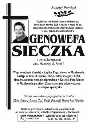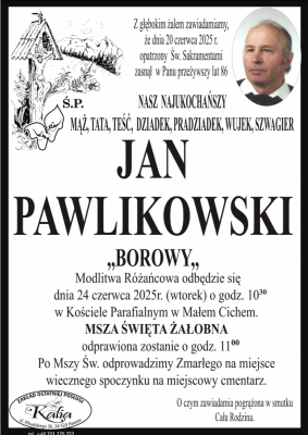 Podhale24.pl zastrzega sobie prawo do nie publikowania wspomnień, w szczególności tych nie związanych z profilem działu nekrologi, zawierających wulgaryzmy, wzywających do zachowań niezgodnych z prawem, obrażających osoby publiczne i prywatne, obrażających inne narodowości, rasy, religie itd, oraz te, bez możliwości telefonicznej lub mailowej weryfikacji ich autora.