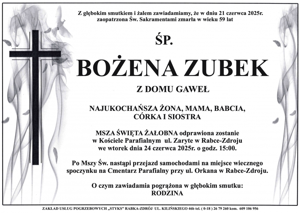 Bożena Zubek - Nekrologi - podhale24.pl