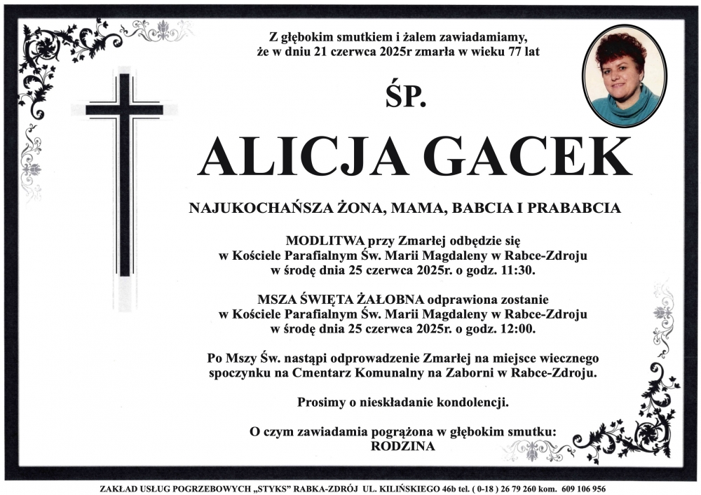 Alicja Gacek - Nekrologi - podhale24.pl