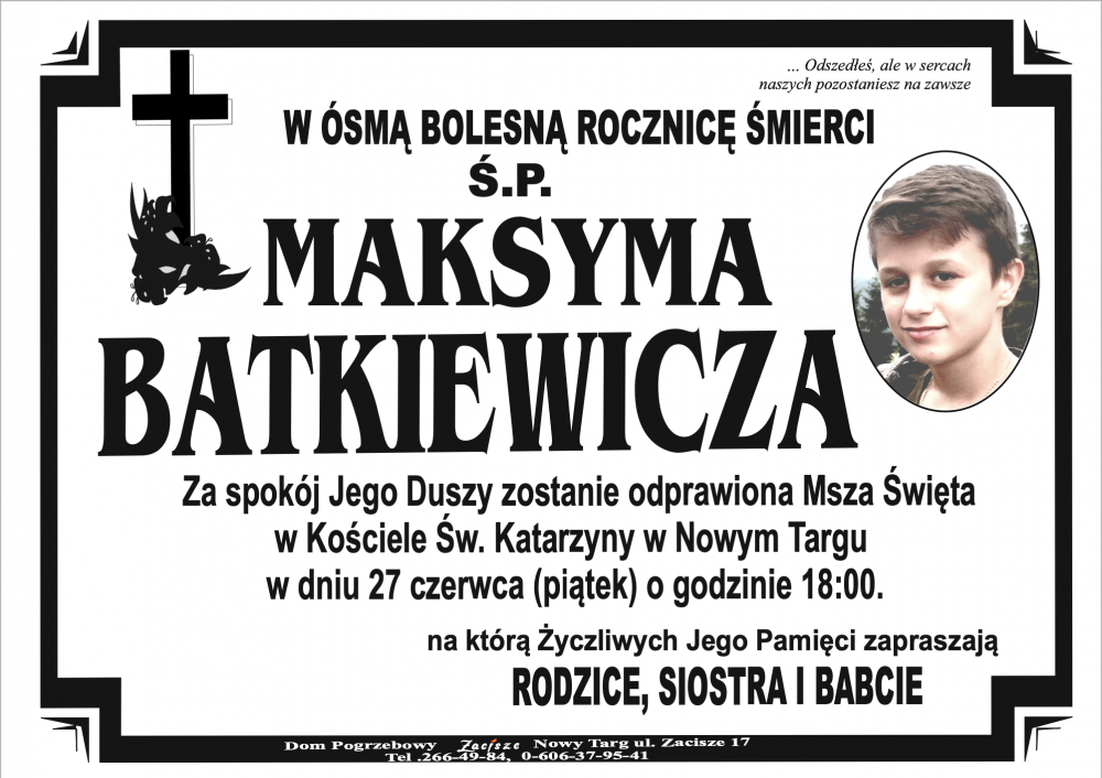 Maksymilian Batkiewicz - Nekrologi - podhale24.pl