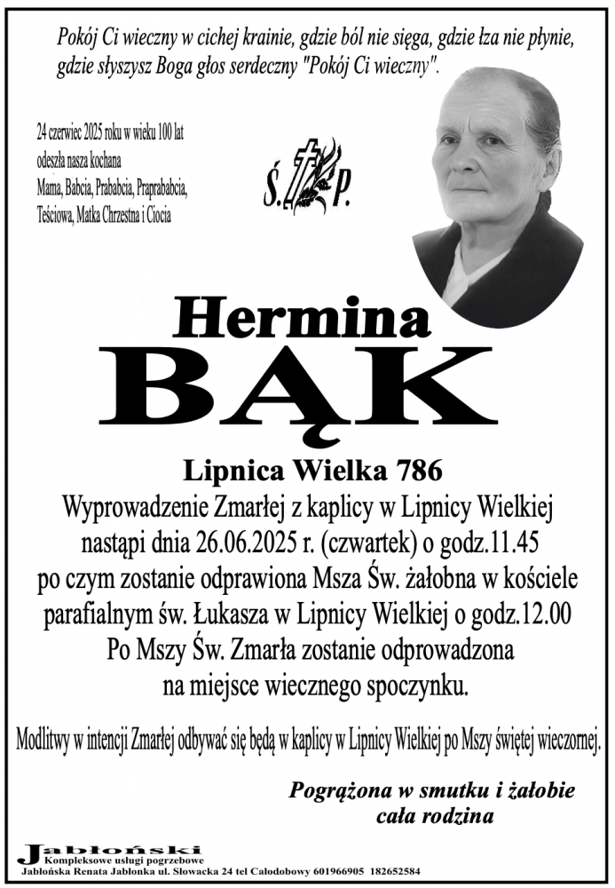 Hermina Bąk - Nekrologi - podhale24.pl