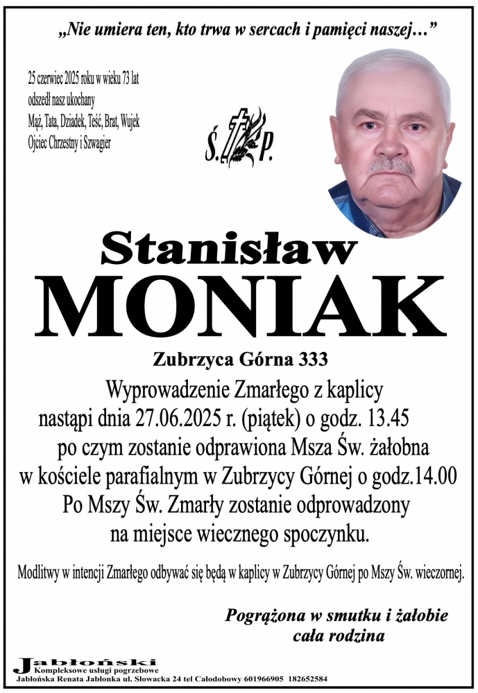 Stanisław Moniak - Nekrologi - podhale24.pl