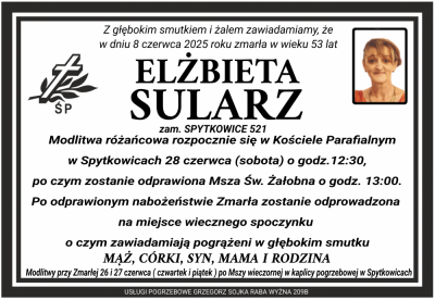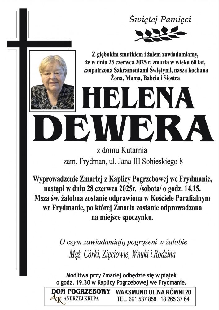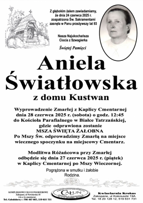 Podhale24.pl zastrzega sobie prawo do nie publikowania wspomnień, w szczególności tych nie związanych z profilem działu nekrologi, zawierających wulgaryzmy, wzywających do zachowań niezgodnych z prawem, obrażających osoby publiczne i prywatne, obrażających inne narodowości, rasy, religie itd, oraz te, bez możliwości telefonicznej lub mailowej weryfikacji ich autora.