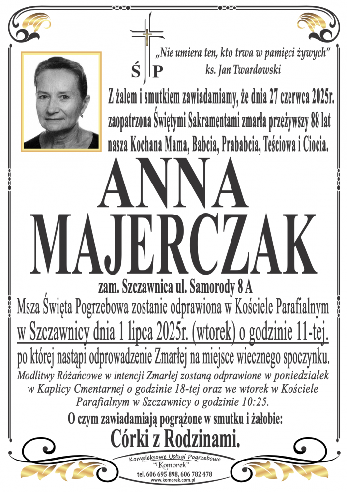 Podhale24.pl zastrzega sobie prawo do nie publikowania wspomnień, w szczególności tych nie związanych z profilem działu nekrologi, zawierających wulgaryzmy, wzywających do zachowań niezgodnych z prawem, obrażających osoby publiczne i prywatne, obrażających inne narodowości, rasy, religie itd, oraz te, bez możliwości telefonicznej lub mailowej weryfikacji ich autora.