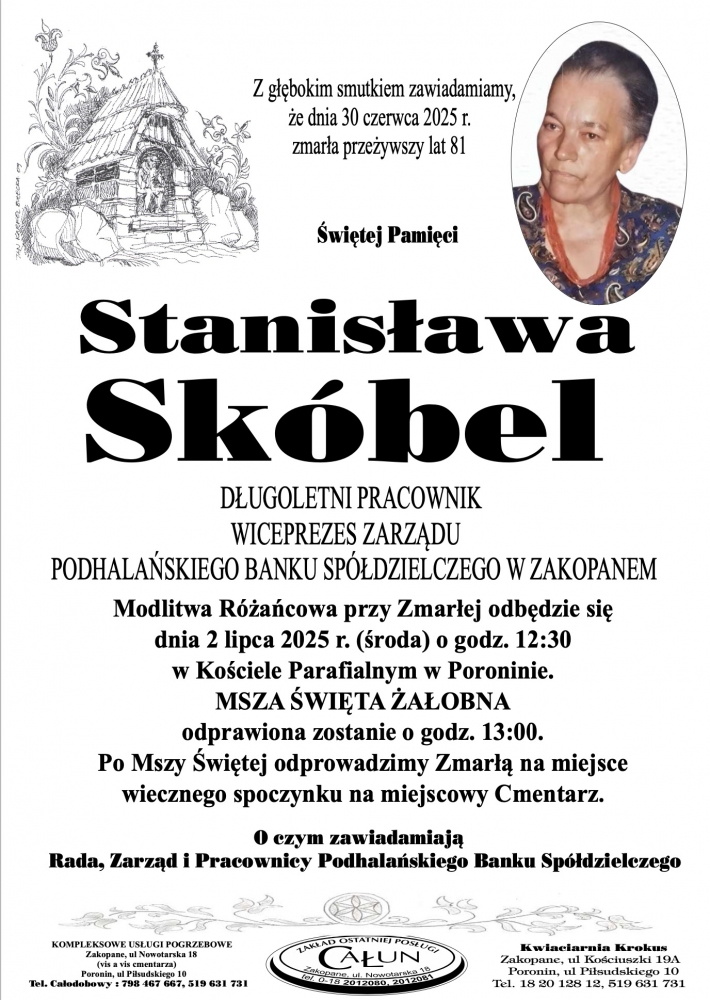 Stanisława Skóbel - Nekrologi - podhale24.pl